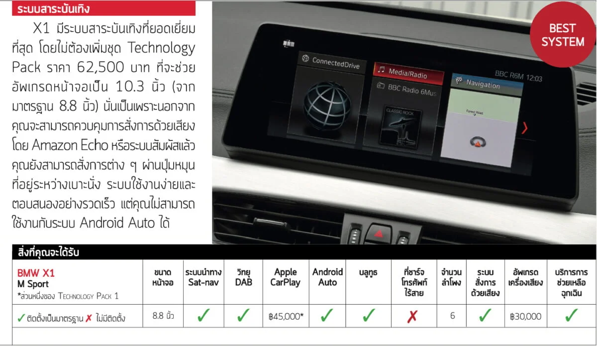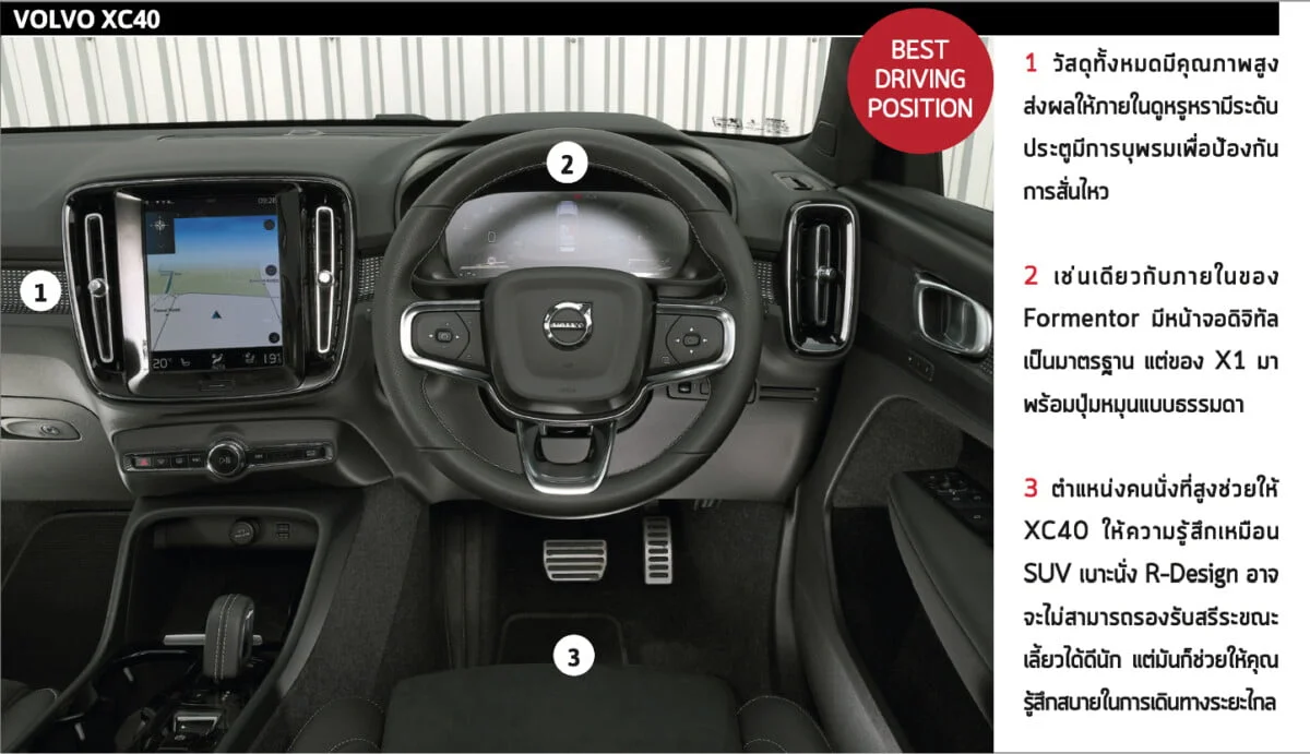 XC40 อาจเป็นรุ่นที่มีราคาถูกที่สุด แต่ภายในมีการผสานวัสดุต่าง ๆ ที่ผ่านการประกอบเข้ากันอย่างประณีต ภายในของ X1 ก็ยอดเยี่ยม มีการแต่งด้วยโลหะช่วยเสริมความรู้สึกมีระดับและมาตรฐานสูง