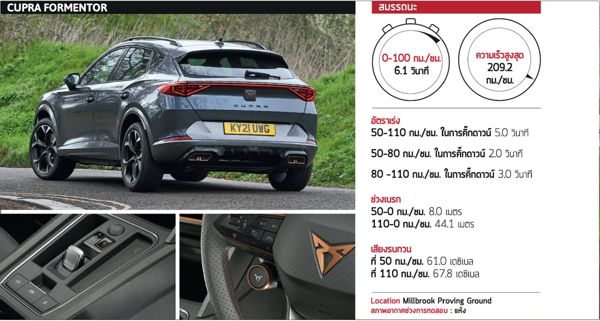 คู่แข่งที่มีความสปอร์ตมากกว่ามาจากแบรนด์ที่คุณอาจไม่เคยได้ยินชื่อมาก่อน Cupra แบรนด์สมรรถนะสูงของ Seat รถยนต์รุ่นล่าสุดคือ Formentor ซึ่งเป็นส่วนผสมระหว่าง coupé และ SUV มันขับเคลื่อนด้วยเครื่องยนต์เบนซินขุมพลังจาก 148 แรงม้าจนถึง 306 แรงม้า แต่ในวันนี้เราทดสอบร่วมกับ plug-in สองรุ่นที่มีพละกำลังมากกว่า