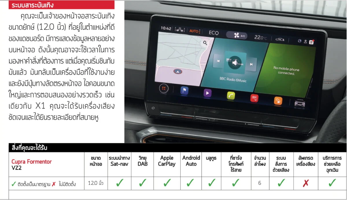 แม้ว่า Formentor จะไม่สามารถเทียบกับ XC40 ในด้านนี้ได้ แต่ช่วงล่างปรับได้แบบมาตรฐานของมันก็ช่วยเสริมความนุ่มนวลขณะขับขี่ได้เช่นกัน และแน่นอนว่า Formentor ทำได้ดีกว่า X1 ที่คุณจะรู้สึกถึงลูกระนาดใต้ท้องรถทันที ซึ่งคุณอาจจะไม่ถึงกับบอกว่ารถยนต์รุ่นนี้นั่งไม่สบาย
