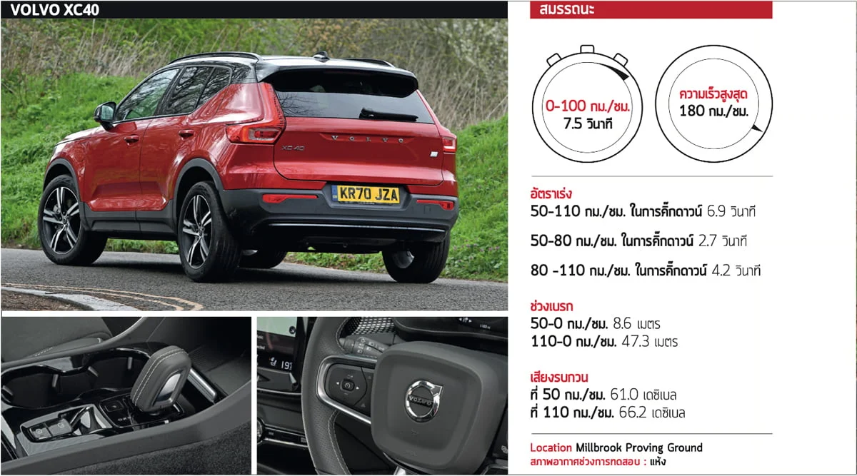 XC40 ครองตำแหน่งช้าที่สุดในที่นี้ แต่ถือว่าไม่ได้ต่างจากคู่แข่งเท่าไรนัก เพราะมันสามารถทำความเร็วจาก 50-110 กม./ชม. ได้ภายใน 6.9 วินาที ไม่ว่าจะบนมอเตอร์เวย์หรือวิ่งบนถนนที่มีการจราจรคับคั่งก็ไม่เป็นปัญหา ไม่ต้องสงสัยเลยว่ารถยนต์รุ่นใหญ่คันนี้มุ่งเน้นการมอบความสบายมากกว่าความเร็ว