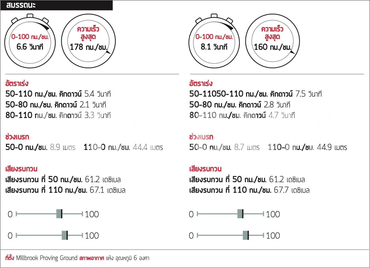 พวกเราทราบกันดีว่ามันไม่ใช่ Mach 1 แต่ Mach-E ก็ยังไวกว่าคู่แข่ง รถยนต์ทั้งสองรุ่นเป็นรถยนต์ไฟฟ้าที่สามารถพาคุณพุ่งออกตัวจากไฟแดงได้อย่างรวดเร็วกว่ารถยนต์น้ำมันทั่วไป แต่ Mach-E สามารถแตะ 100 กม./ชม. ได้ภายใน 6.6 วินาที โดยไวกว่า ID.4 ถึง 1.5 วินาที และสามารถแตะ 50-110 กม./ชม. ได้ไวกว่าคู่แข่งถึง 2 วินาที ซึ่งเราพบว่ามันสมเหตุสมผลเมื่อพิจารณาขุมพลังที่มากกว่ากัน 60 แรงม้า