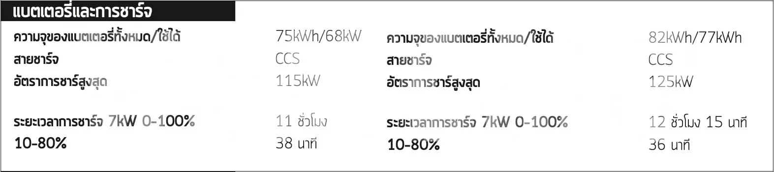 ข้อดีนี้กลับถูกผลักออกไปเมื่อเราพูดถึงขนาดของแบตเตอรี่ แบตเตอรี่ของ ID.4 สามารถจุได้ 77kWh ในขณะที่ของ Mach-Eจุได้ 68 kWh นั่นจึงเป็นเหตุผลที่ทำไม ID.4 สามารถวิ่งได้ไกลถึง 500 กิโลเมตรในการชาร์จหนึ่งครั้ง ในขณะที่ Mach-Eสามารถไปได้ไกล 370 กิโลเมตร ทั้งสองคันไม่สามารถไปถึงระยะดังกล่าวได้ในการทดสอบของเรา ทั้งนี้ขึ้นกับอัตราการบริโภคพลังงานในเส้นทางที่เรากำหนด
