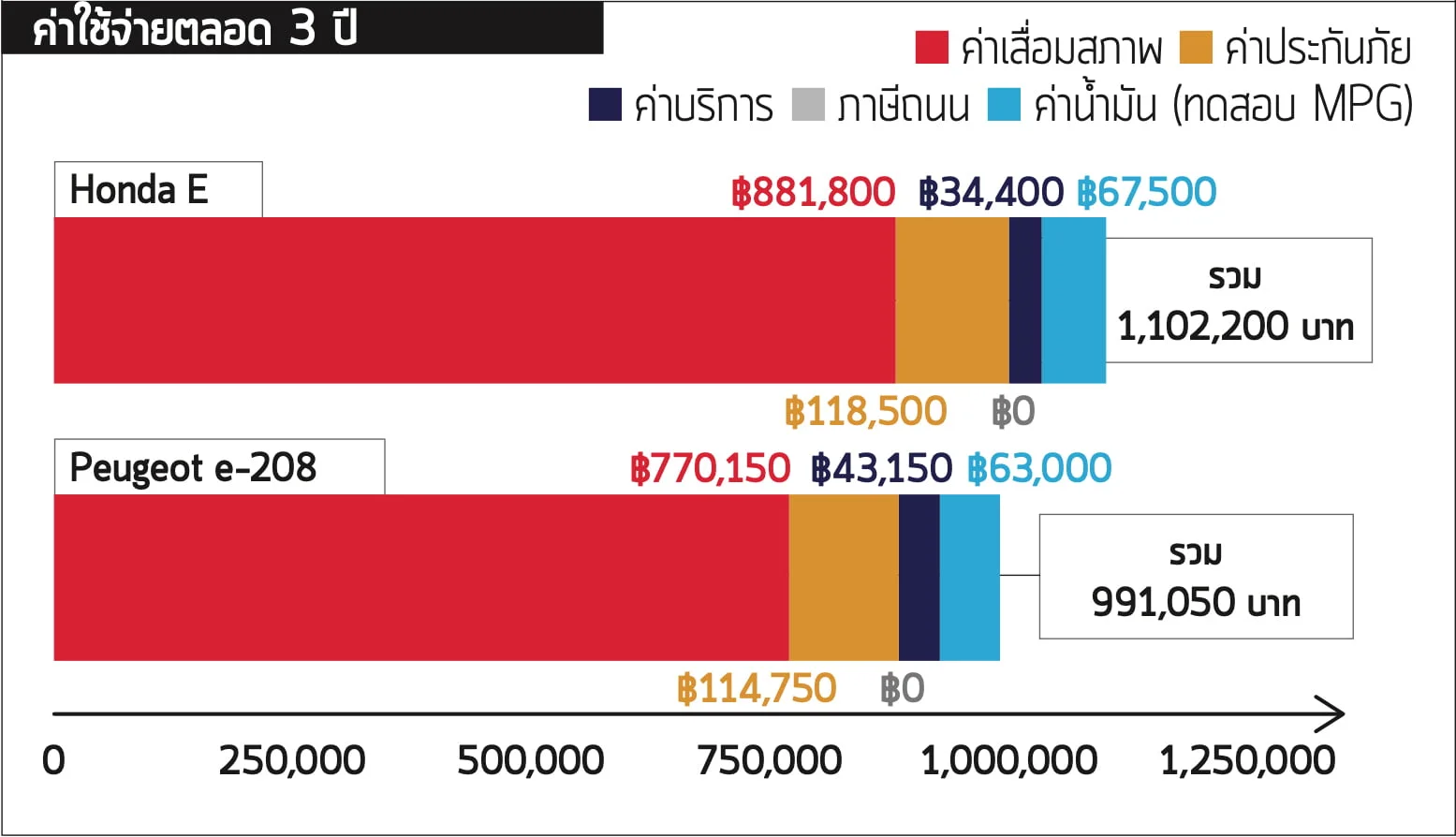 สำหรับ Peugeot อาจจะมีค่าใช้จ่ายแยกในการบำรุงรักษามากกว่าแต่ก็มีระยะเวลาเสื่อมที่ช้ากว่า หากซื้อในนามรถยนต์ส่วนตัวจะมีค่าใช้จ่ายโดยรวมตลอดระยะเวลา 3 ปีประมาณ 2,000 ปอนด์ หรือ 100,000 บาท