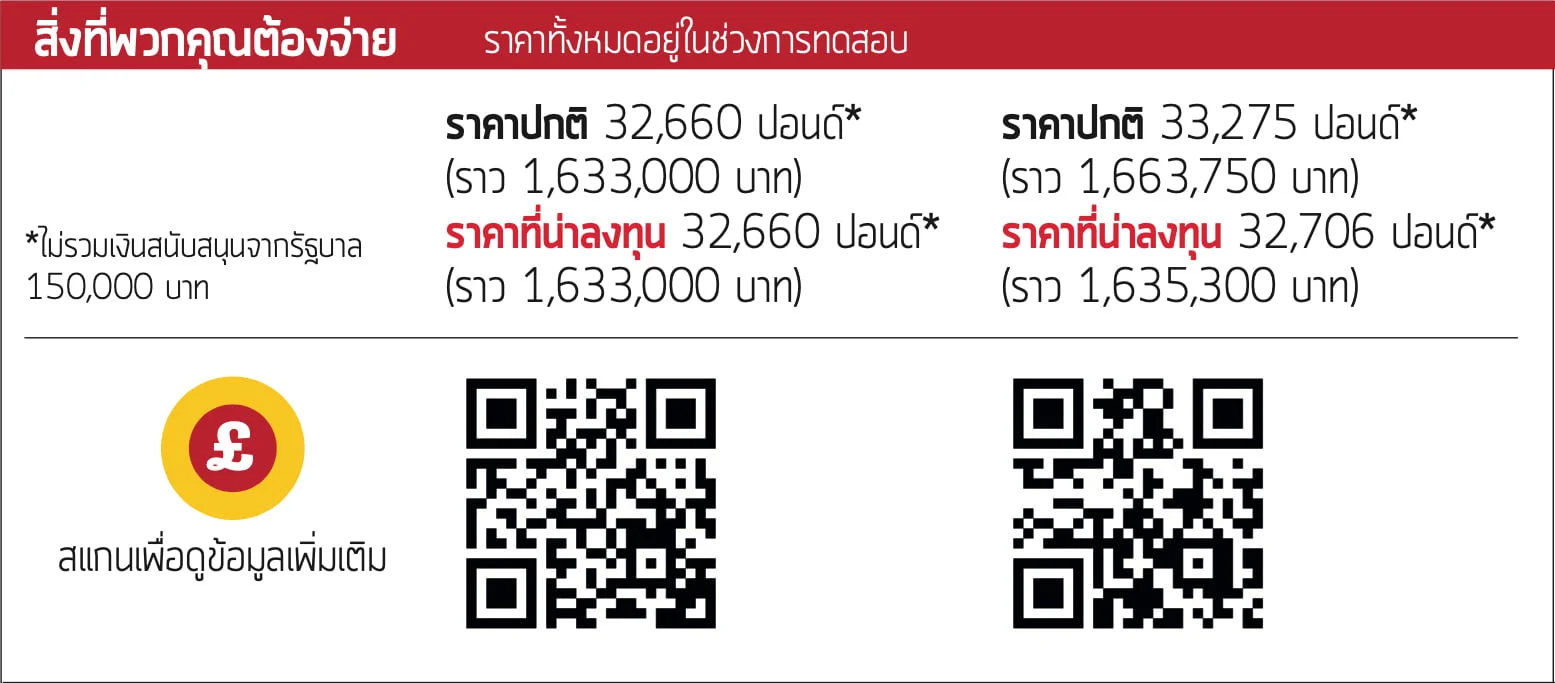 ราคาที่น่าลงทุน 32,660 ปอนด์* (ราว 1,633,000 บาท)