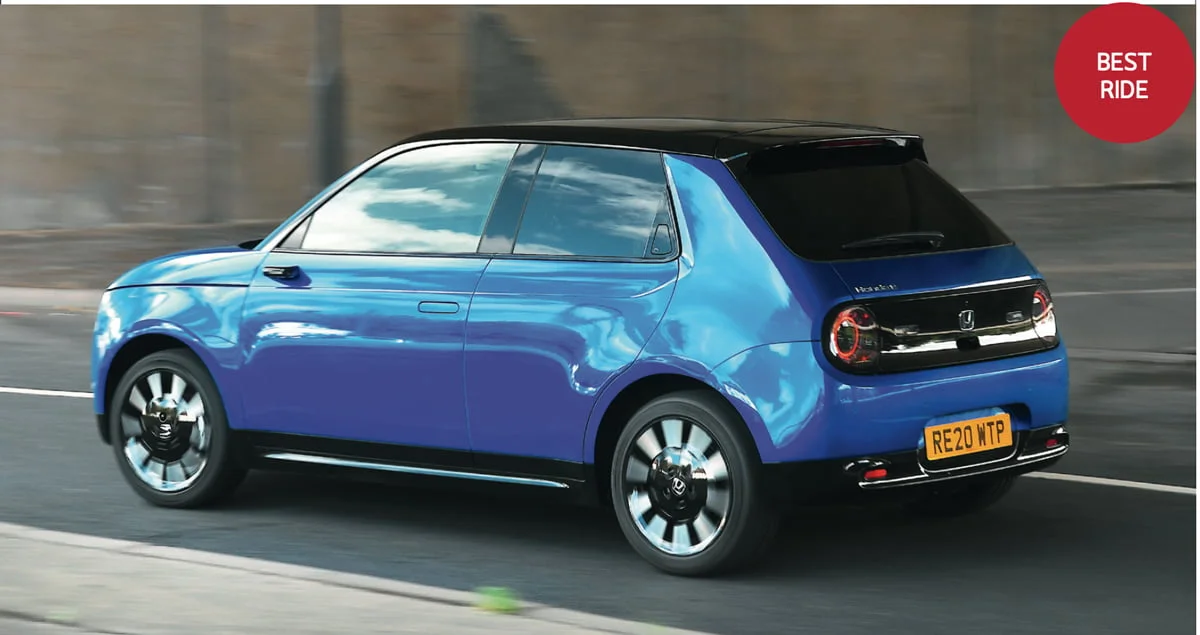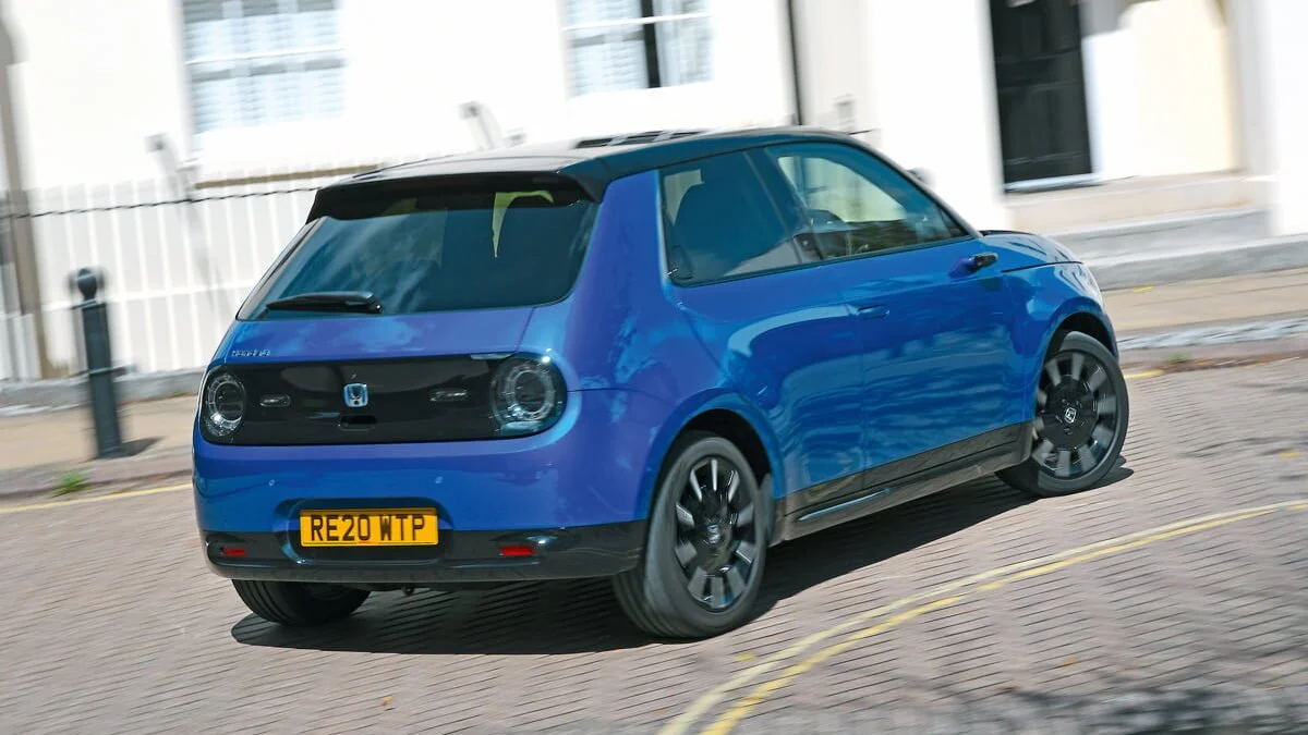 Honda E ที่ค่อนข้างนุ่มนวลเข้าโค้งสไลด์ตัวงาม มีการยึดเกาะถนนที่ดีและการบังคับเลี้ยวที่แม่นยำ