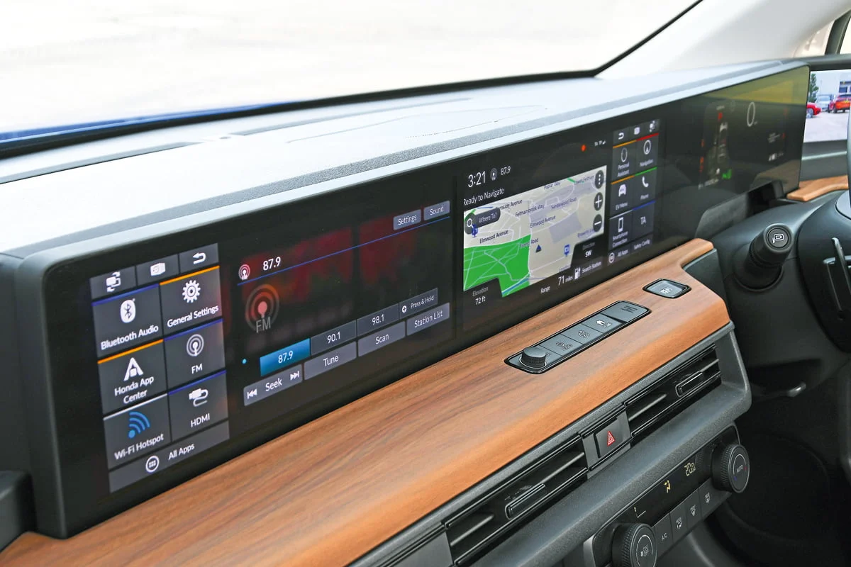 Honda มีการแสดงผลมากกว่า Starship Enterprise แต่หน้าจอสาระบันเทิง 12.3 นิ้วที่อยู่กึ่งกลางของแผงเป็นสิ่งที่เราสนใจ คุณจะเลือกแสดงผลที่หน้าจอใดก็ได้ แต่น่าเสียดายที่กราฟฟิกกลับไม่ดีเท่าที่คาดไว้ บางครั้งมีการตอบสนองช้าและเมนูค่อนข้างชวนสับสน แต่อย่างน้อยคุณสามารถใช้งาน Apple CarPlay และ Android Auto โดยไม่ใช้งานระบบของ Honda ได้