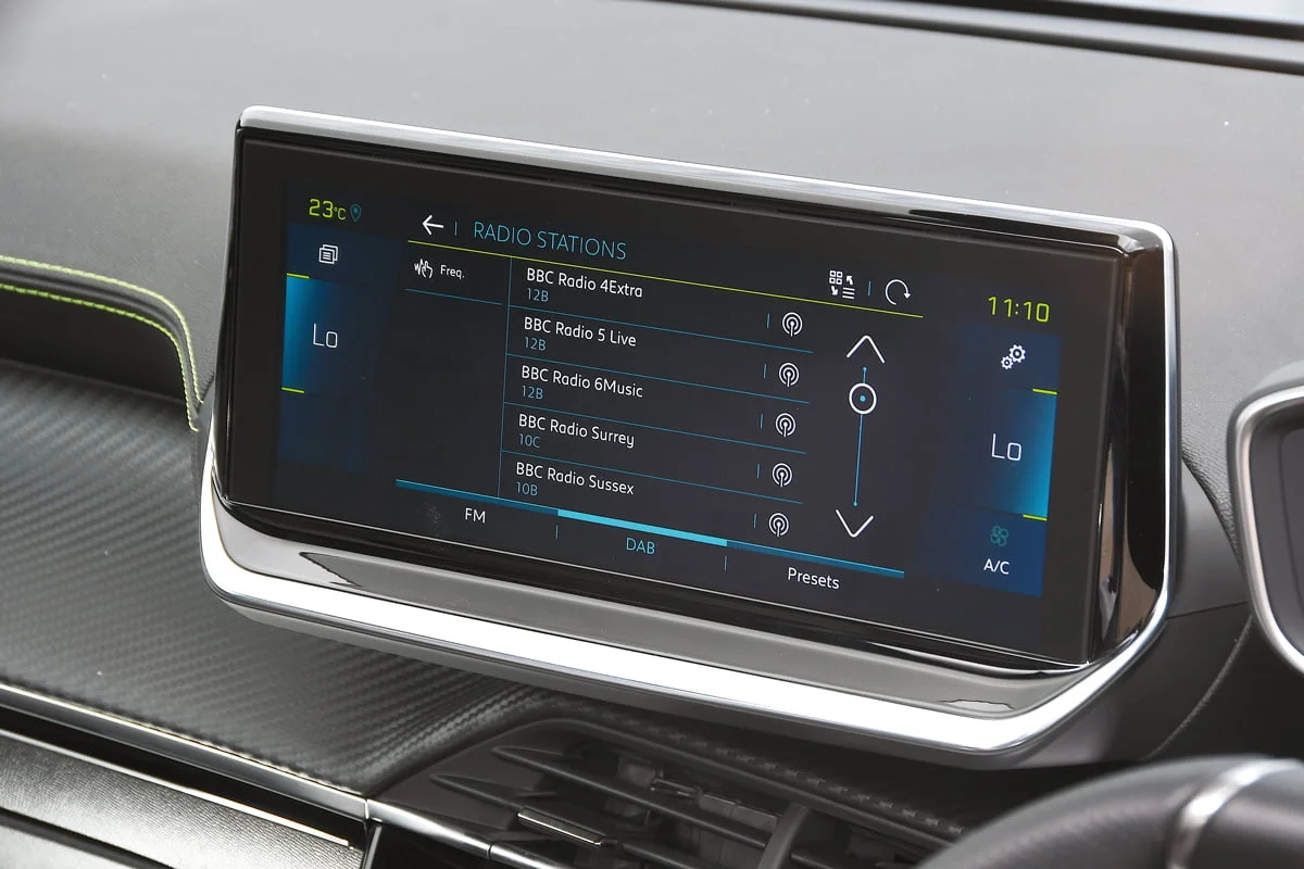 ระบบสัมผัสของ peugeot มีขนาดเหมาะสม (10.0 นิ้ว) และมีกราฟฟิกที่ชัดเจน หน้าจอตั้งขึ้นจากแดชบอร์ดทำให้ง่ายต่อการมองเห็นโดยไม่ต้องละสายตาจากถนน อย่างไรก็ตามมันตอบสนองต่อการสั่งการช้าบ้างครั้งและเราก็ไม่ค่อยชอบปุ่มทางลัดตรงหน้าจอด้านล่าง ปุ่มเหล่านี้จะนำทางไปที่เมนูหลัก (เช่นสำหรับ sat-nav หรือวิทยุ) แต่มันกลับเป็นปุ่มแบบสัมผัสไม่ใช่ปุ่มแบบกดดังนั้นจึงใช้งานระหว่างขับขี่ค่อนข้างยาก