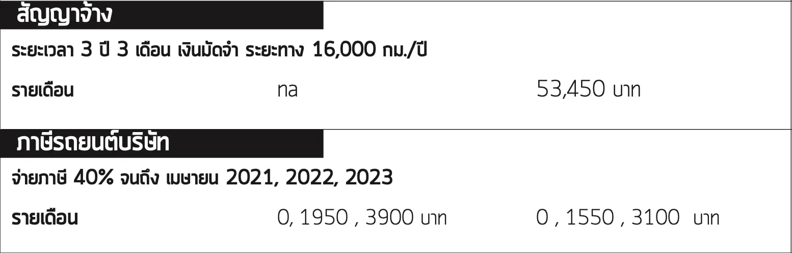 ออปชั่นเสริมที่แนะนำ กล้องมองหลัง (480 ปอนด์ หรือ 24,000 บาท), สายชาร์จ Type 2 (210 ปอนด์ หรือ 10,500 บาท)