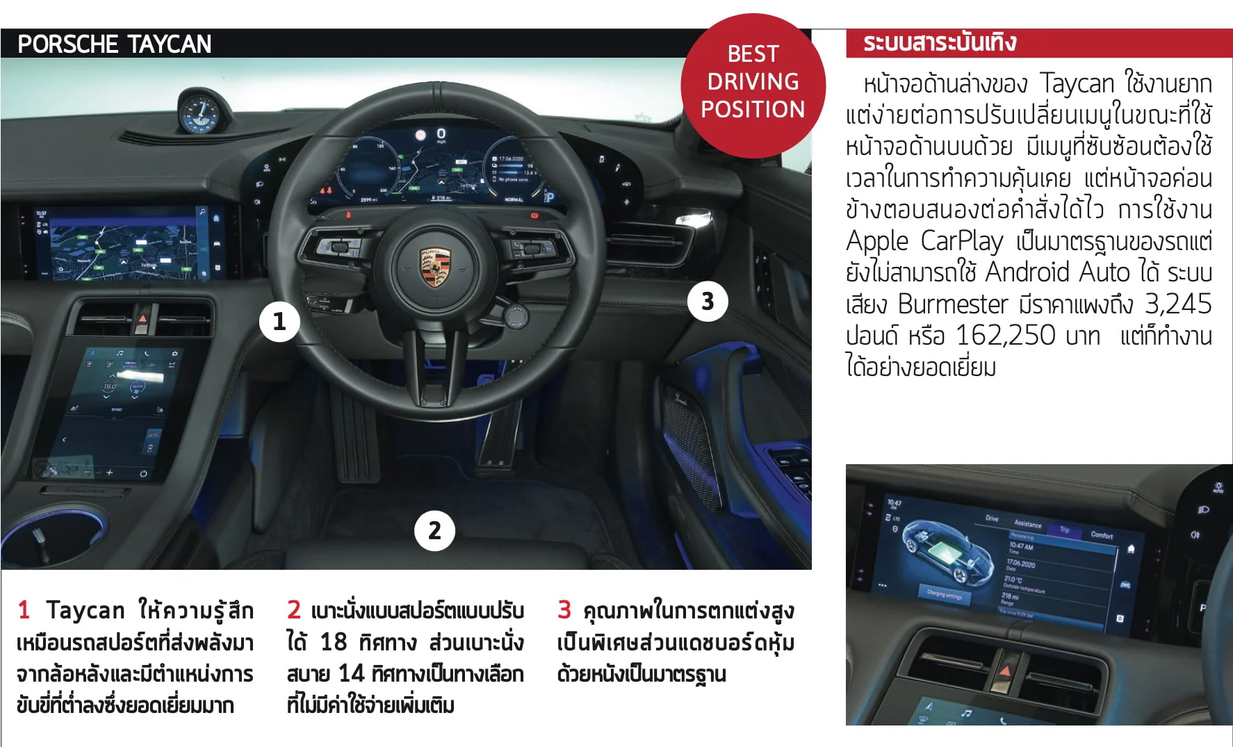 อย่างไรก็ตามในฐานะรถสมรรถนะสูง Taycan กลายเป็นอีกตัวเลือกเพราะมันมีค่าใช้จ่ายมากกว่าถึงอย่างนั้นคุณภาพของมันก็เหมาะสมกับราคา แต่นั่นไม่ใช่สาเหตุที่ทำให้ชนะ การขับเคลื่อนในทางตรงของ Model S สบายกว่า ซึ่งอาจเป็นแนวหน้าของรถยนต์ไฟฟ้า Tesla แต่ Taycan ทำให้ Porsche กลายเป็นผู้ผลิตรายแรกที่ดึงศักยภาพออกมาในฐานะเครื่องจักรของคนขับ