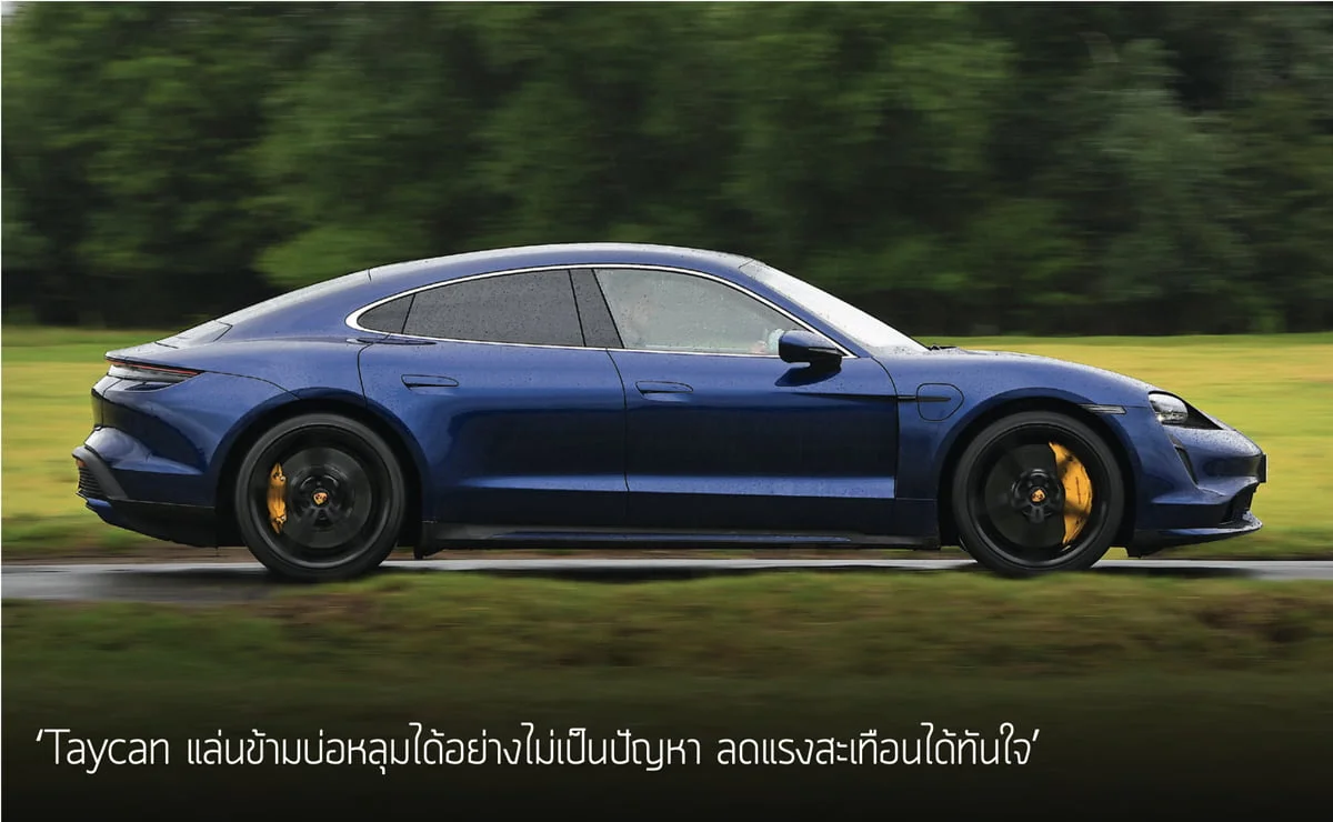 Taycan ก้าวไปสู่อีกระดับด้วยพวงมาลัยมีเพียงการตั้งค่าเดียวแต่สมบูรณ์แบบนั่นคือมีน้ำหนักที่กำลังดีและให้ความรู้สึกที่ยอดเยี่ยม นอกจากนี้ยังมีระบบช่วงล่างถุงลมเป็นมาตรฐานของรถ แต่รถของเรายังมีระบบ Porsche Dynamic Chassis Control Sport ที่เป็นอุปกรณ์เสริมเพื่อให้แน่นยิ่งขึ้น ไม่ว่าจะอยู่ในโหมดใด Taycan จะสงบเงียบมากกว่า กล่าวโดยสรุปคือการทรงตัวที่สง่างามของ Taycan นั้นไม่เหมือนกับรถยนต์ไฟฟ้าอื่น ๆ ที่เราเคยขับ