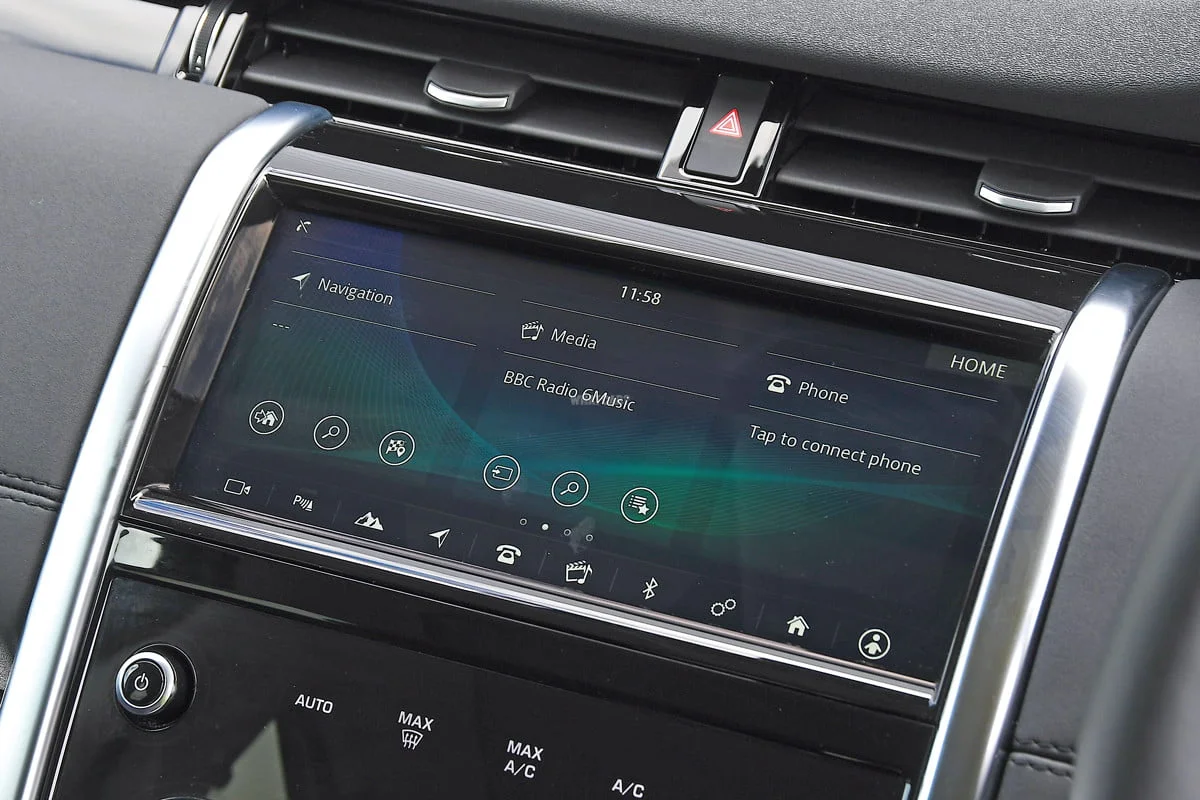 หน้าจอระบบสัมผัสขนาด 10.2 นิ้วของ Discovery Sport ถูกติดตั้งไว้ค่อนข้างต่ำจากแผงควบคุม นั่นหมายความว่าคุณจะต้องละสายตาจากถนนเพื่อใช้งาน มีการตอบสนองช้าบ้างบางครั้ง อย่างไรก็ตามมันก็ไม่ได้แย่ไปเสียทั้งหมด เมนูตอบสนองไวและมีไอคอนที่ใหญ่ใช้งานง่ายหรือคุณสามารถใช้งาน Apple CarPlay หรือ Android Auto แทนการใช้งานซอฟต์แวร์ของLand Rover ที่ติดตั้งมาก็ได้