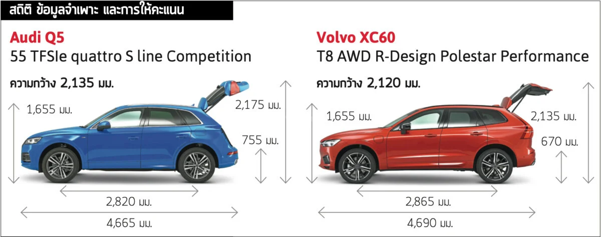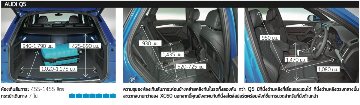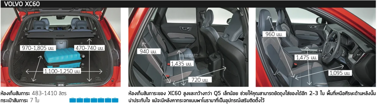 XC60 ตามมาติดๆ มันมีขนาดกว้างกว่าเล็กน้อยแต่ยังไม่มากพอที่จะชนะได้ได้เนื่องจาก Q5 ใช้งานจริงได้มากกว่าสำหรับคนส่วนใหญ่