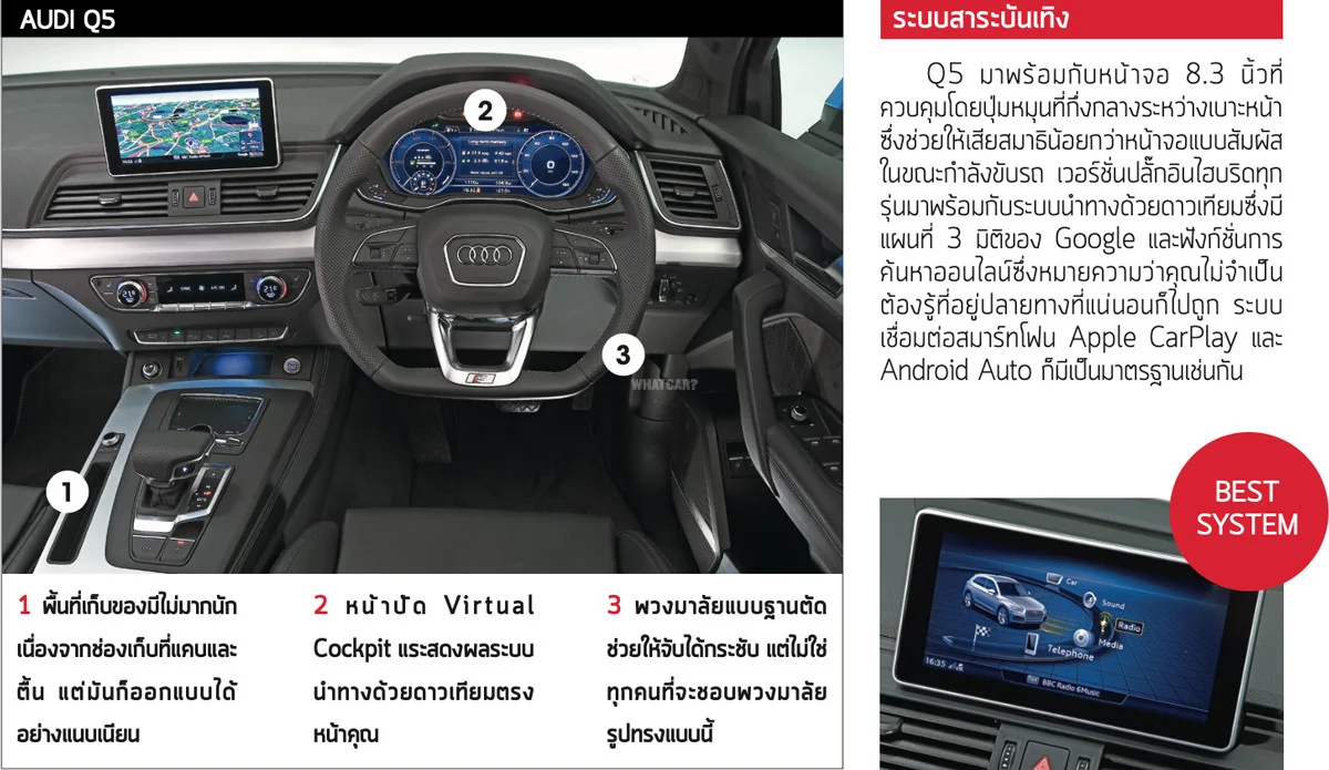 - Q5 โคลงเล็กน้อยตอนเข้าโค้ง การขับมั่นคงแต่ไม่นุ่มสบายเท่าไร