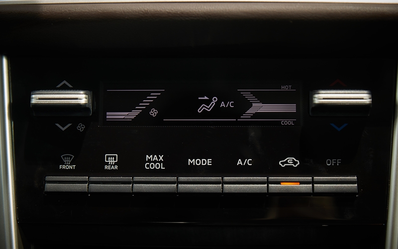 แผงระบบแอร์ด้านหน้าเป็นแบบดิจิตอล มาพร้อมฟังก์ชั่น Max Cool ที่จะช่วยเร่งความแรงของพัดลมและอุณหภูมิของแอร์ให้เย็นฉ่ำได้ดังใจ สำหรับผู้โดยสารตอนหลังเป็นช่องแอร์บนหลังคาพร้อมปุ่มปรับระดับความแรงของพัดลม
