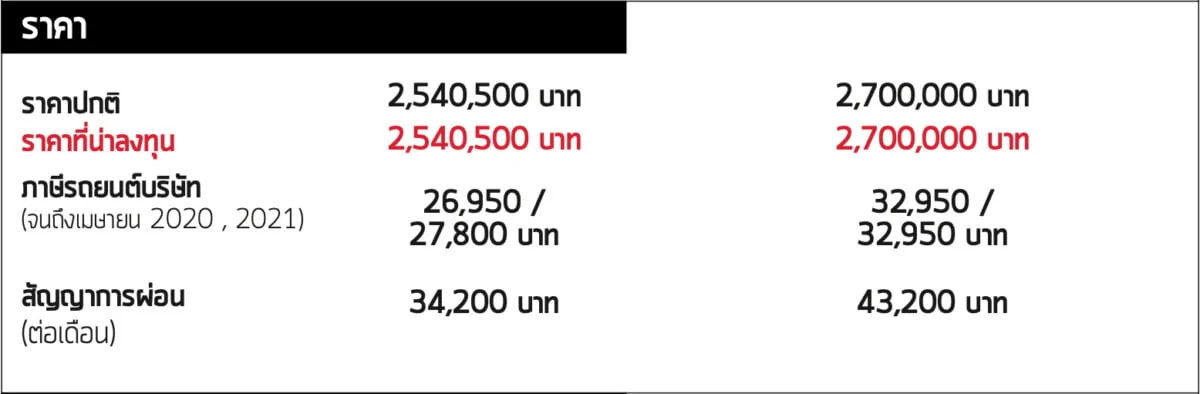 ราคาจำหน่ายในประเทศไทย 4,999,000 บาท