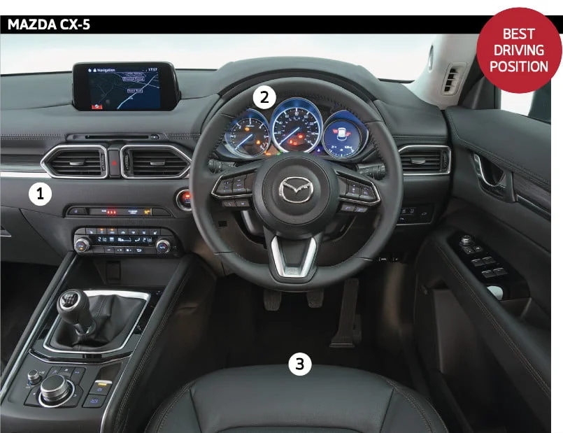 ใน CR-V คุณต้องตั้งค่าทุกอย่างด้วยตัวเองแม้ว่ารถทั้งสามคันจะมีตัวดันหลังแบบปรับได้เป็นมาตรฐานเพื่อช่วยลดอาการปวดหลังส่วนล่างในการเดินทางที่ยาวนาน เบาะของ CX-5 ช่วยยึดคุณไว้กับที่นั่งได้อย่างปลอดภัยที่สุดเมื่อผ่านโค้ง ขณะที่เบาะของ CR-V รองรับแผ่นหลังส่วนบนของคุณมากที่สุด แม้ว่าฐานของมันจะทำให้คุณล้าหลังจากผ่านไปราว 1 ชม.