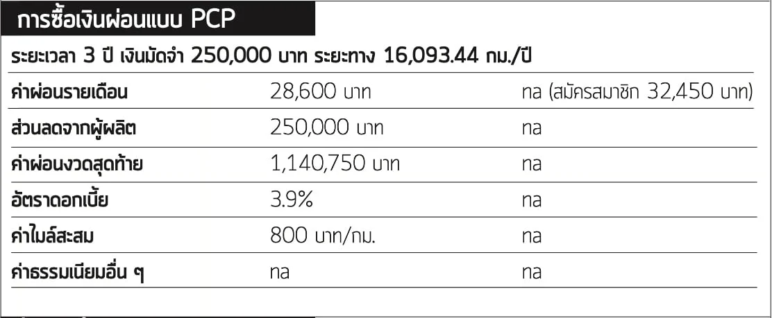 ไม่มีตัวเลือกการผ่อนแบบ PCP สำหรับ XC40 แต่คุณสามารถเลือกสมัครสมาชิก “Care by Volvo” แทนได้ การชำระเงินรายเดือนครอบคลุมค่าบริการ การบำรุงรักษาตามปกติ ยางรถยนต์ และการช่วยเหลือฉุกเฉินบนท้องถนน แม้ว่าการประกันภัยจะมีค่าใช้จ่ายเพิ่มเติม ไม่มีการเก็บเงินมัดจำแต่จะมีค่าใช้จ่าย 32,450 บาทต่อเดือน พร้อมระยะวิ่ง 10,000 กิโลเมตร