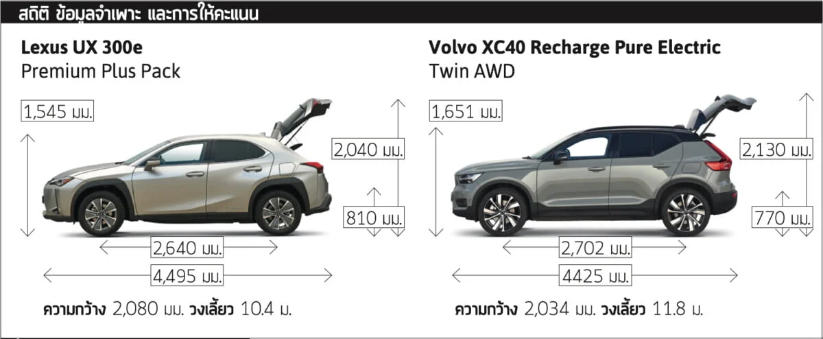 รถ SUV แบบ EVรถยนต์ดังกล่าว ไม่เพียงแต่มีขนาดใหญ่พอที่จะรองรับชุดแบตเตอรี่ขนาดใหญ่ แต่ผู้ซื้อยังรู้สึกคุ้มค่าที่จะจ่ายเงินก้อนโตสำหรับคุณภาพและประสิทธิภาพที่เป็นคุณลักษณะสำคัญของรถยนต์ EV ทั้งสองแบรนด์นี้เราคุ้นเคยกันอยู่แล้ว แต่ตอนนี้ Lexus UX และ Volvo XC40 ทั้งคู่พร้อมเปิดตัวด้วยทางเลือกรุ่นไฟฟ้าล้วนแล้ว