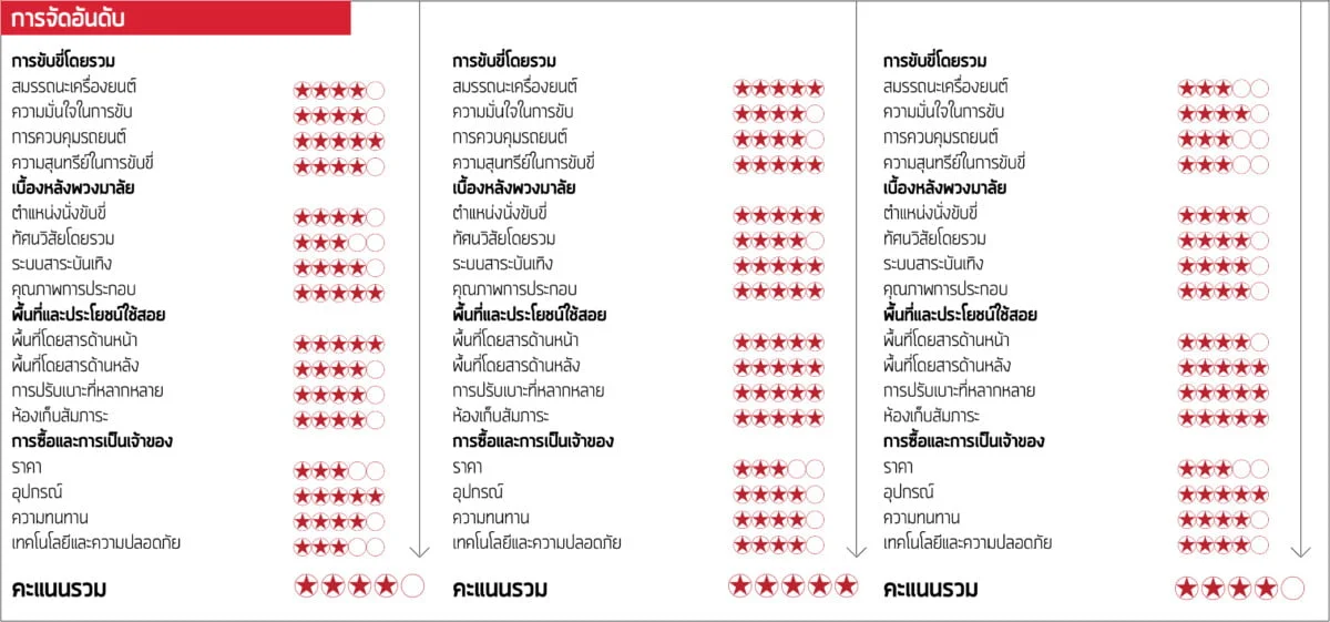 พื้นที่ด้านหน้า, พื้นที่ด้านหลัง, ความยืดหยุ่นของเบาะนั่ง, พื้นที่ท้ายรถ